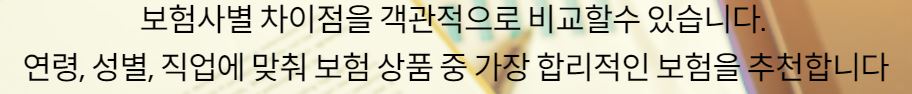 보험사별 차이점을 객관적으로 비교할수 있습니다. 연령, 성별, 직업에 맞춰 보험 상품 중 가장 합리적인 보험을 추천합니다.